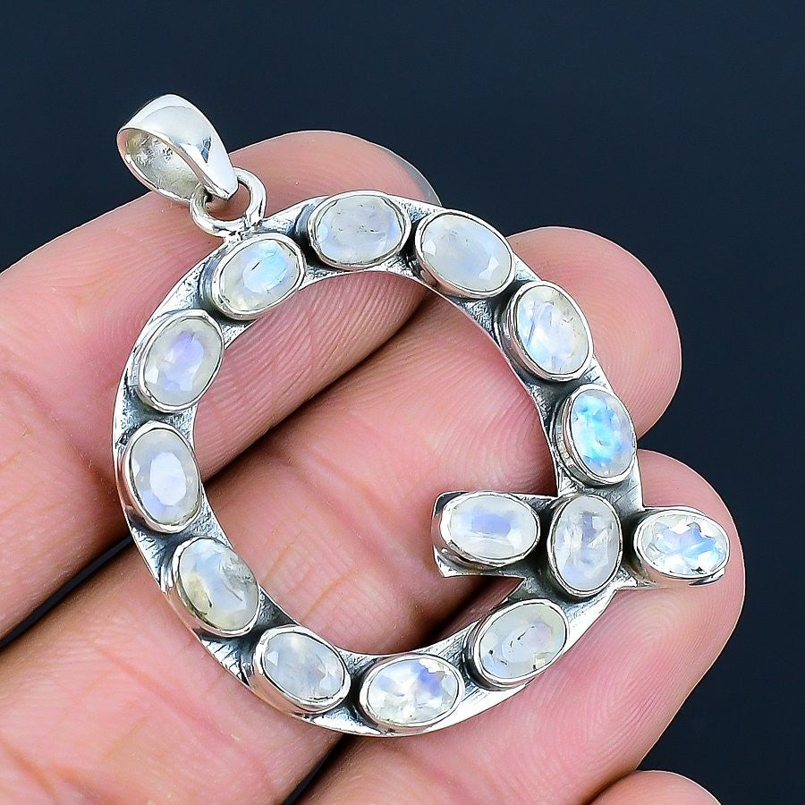 Rainbow Moonstone Gemstone Sisters Day Anniversary Boho Pendant 925 Solid Silver