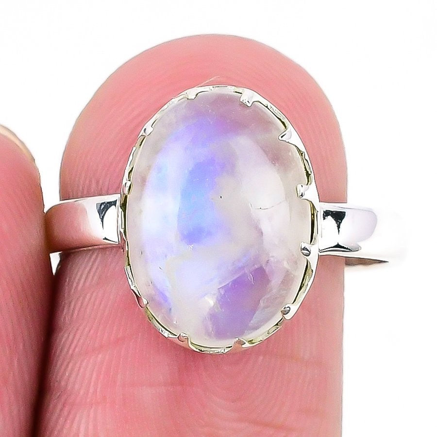 Rainbow Moonstone Gemstone Solid Silver Daughter Elegant Statement Ring US 8.5