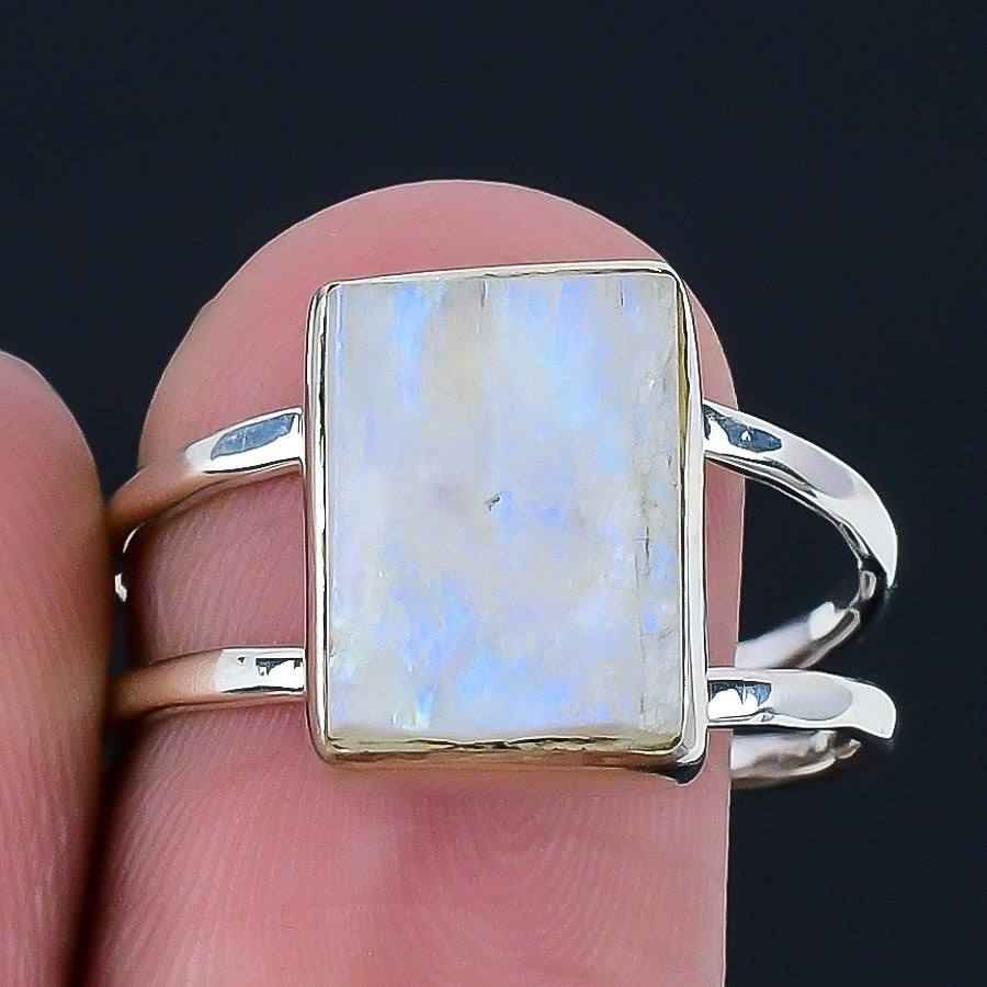 Elegant Rainbow Moonstone Gemstone Statement Friend Gift Rin