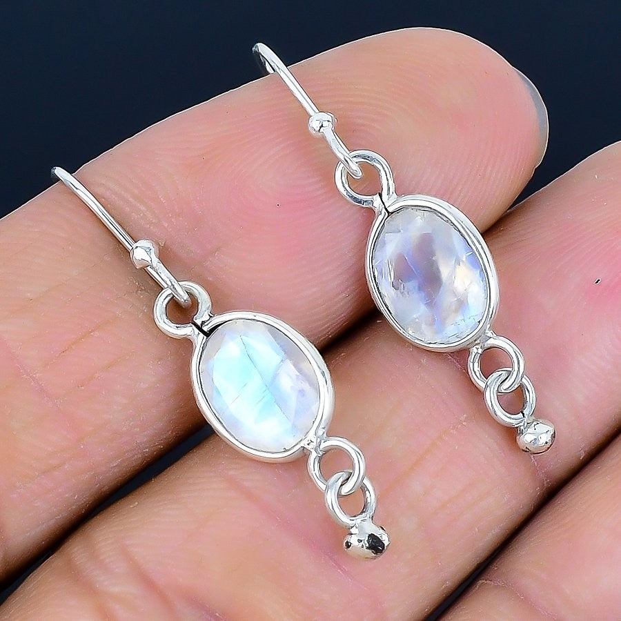 Elegant Rainbow Moonstone Gemstone Sterling Silver Dangle Dr