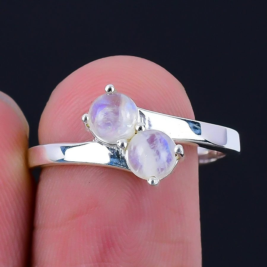Rainbow Moonstone Gemstone Sterling Silver Sister Birthday Statement Ring US 9