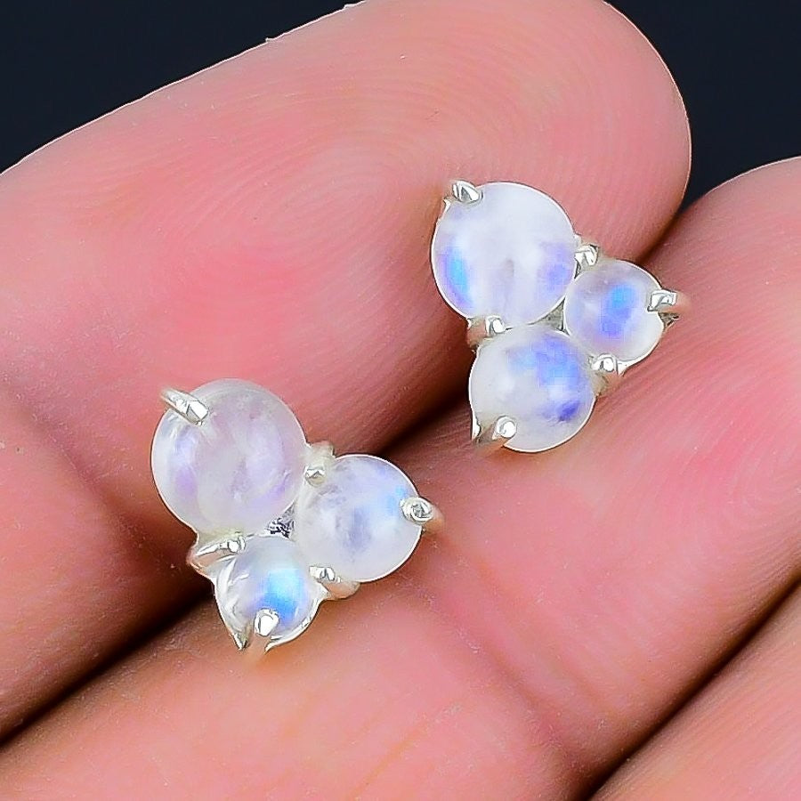 Rainbow Moonstone Gemstone Stud Post Daughter Gift Earrings Jewelry 925 Silver