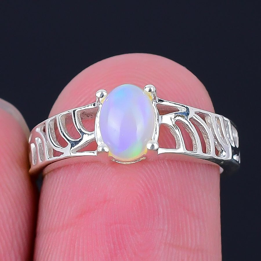 Rainbow Moonstone Stone 925 Silver Birthday Statement Trendy Daughter Ring US 6