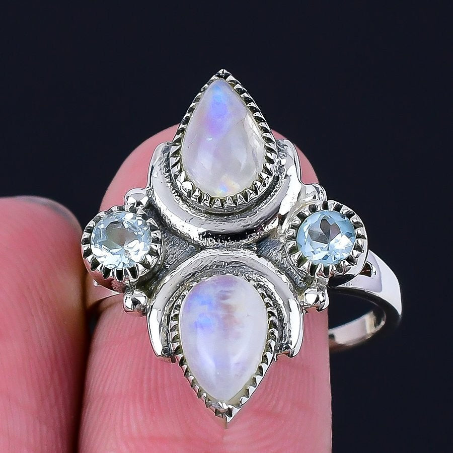 Elegant Rainbow Moonstone Stone 925 Silver Cluster Channel i