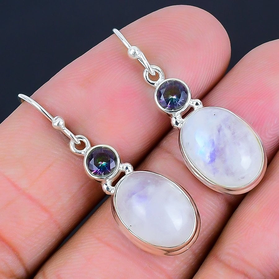 Elegant Rainbow Moonstone Stone 925 Silver Sister Dangling i