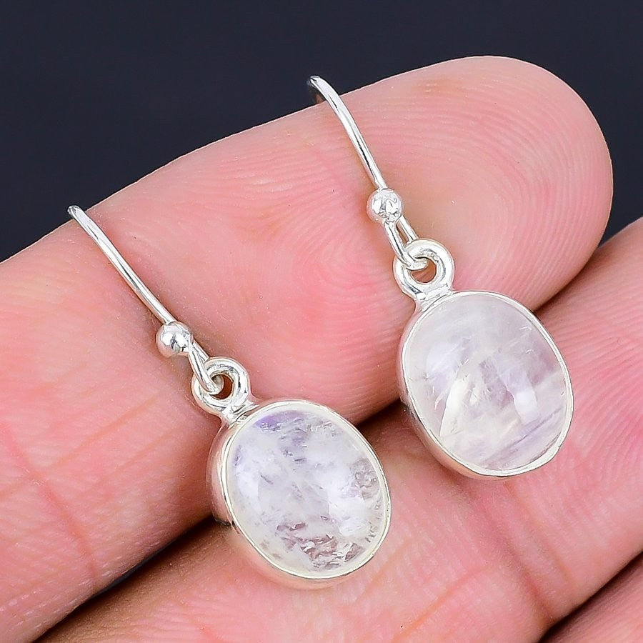 Rainbow Moonstone Stone 925 Solid Silver Ethnic Dangling Sister Earrings Jewelry