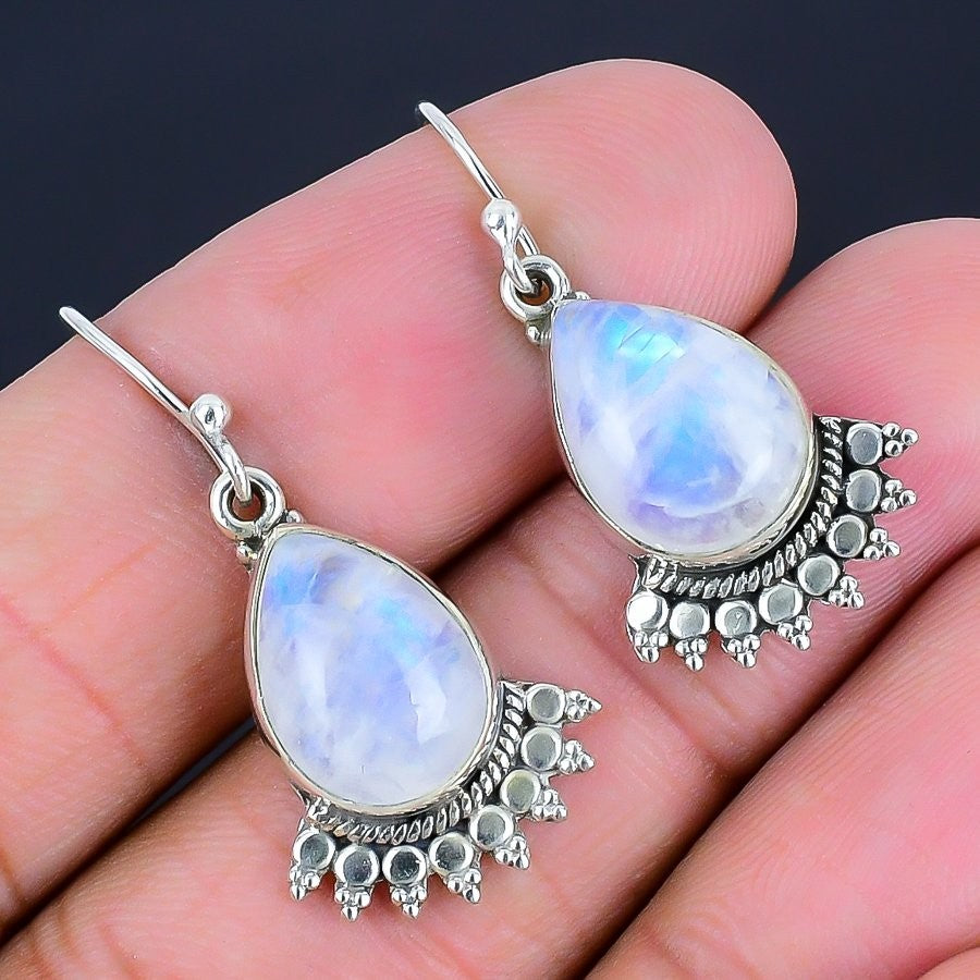 Rainbow Moonstone Stone 925 Solid Silver Wife Drop Ethnic Daughters Day Earrings