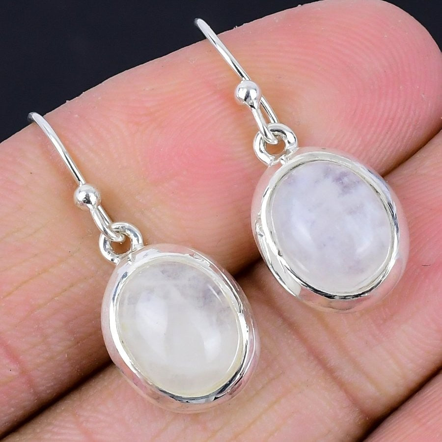 Rainbow Moonstone Stone 925 Sterling Silver Drop Crown Chakra Earrings Jewelry