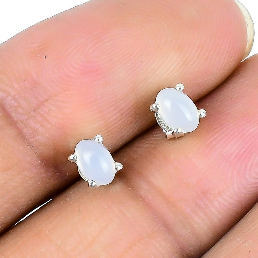 Elegant Rainbow Moonstone Stone 925 Sterling Silver Stud in