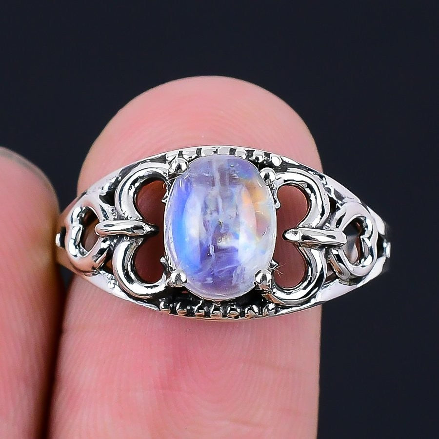 Rainbow Moonstone Stone 925 Sterling Silver Wife Statement Ring Jewelry Size 8.5