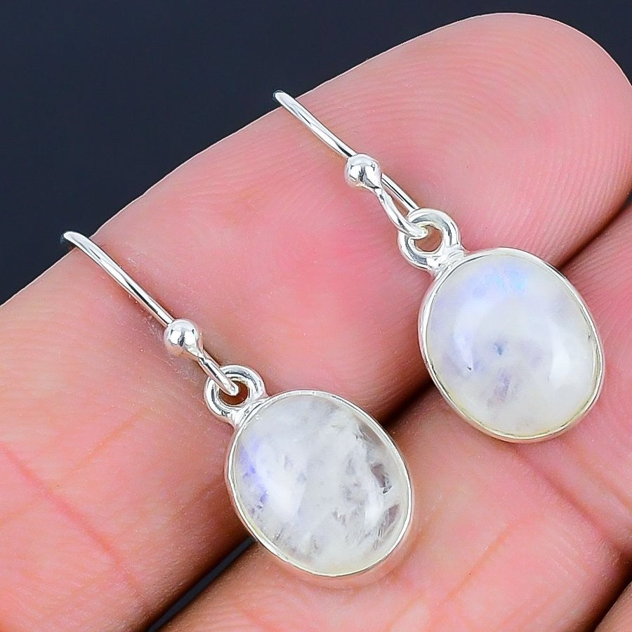 Rainbow Moonstone Stone Daughter Dangle Earrings Jewelry Solid Sterling Silver