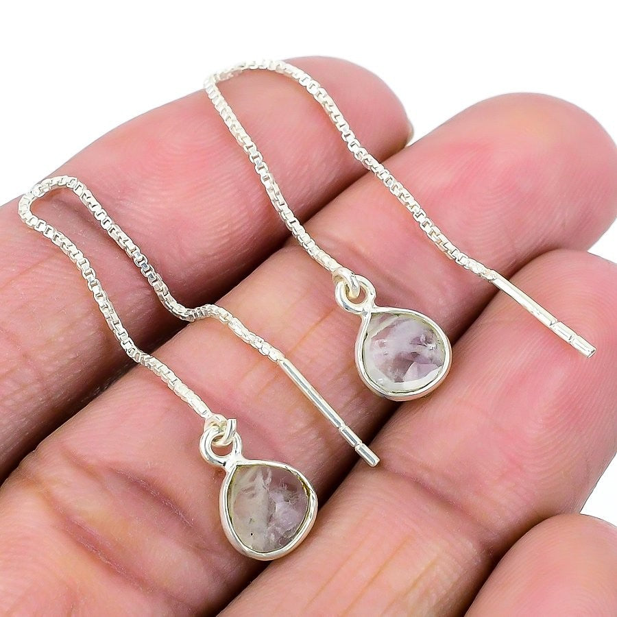 Rainbow Moonstone Stone Drop Dangle Hook Wife Earrings Jewelry Sterling Silver