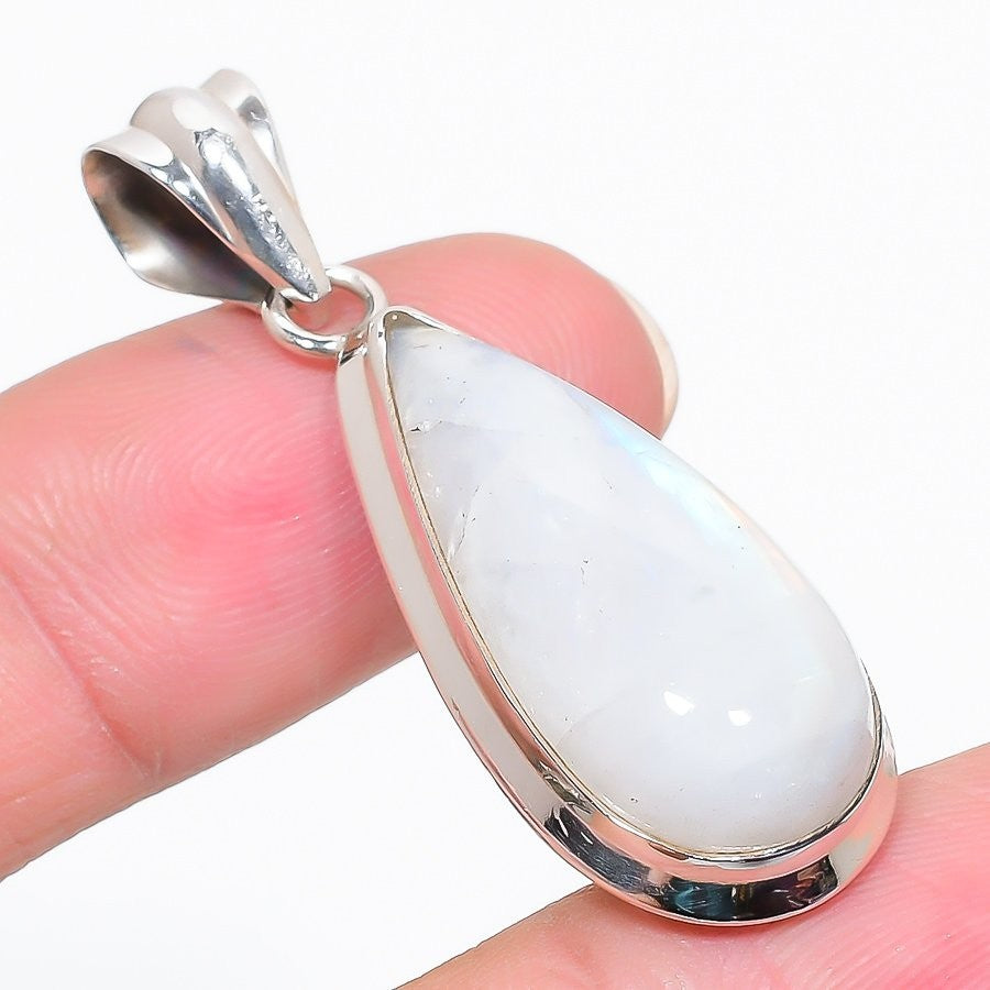 Rainbow Moonstone Stone Ethnic Engagement Pendant Jewelry Solid Sterling Silver
