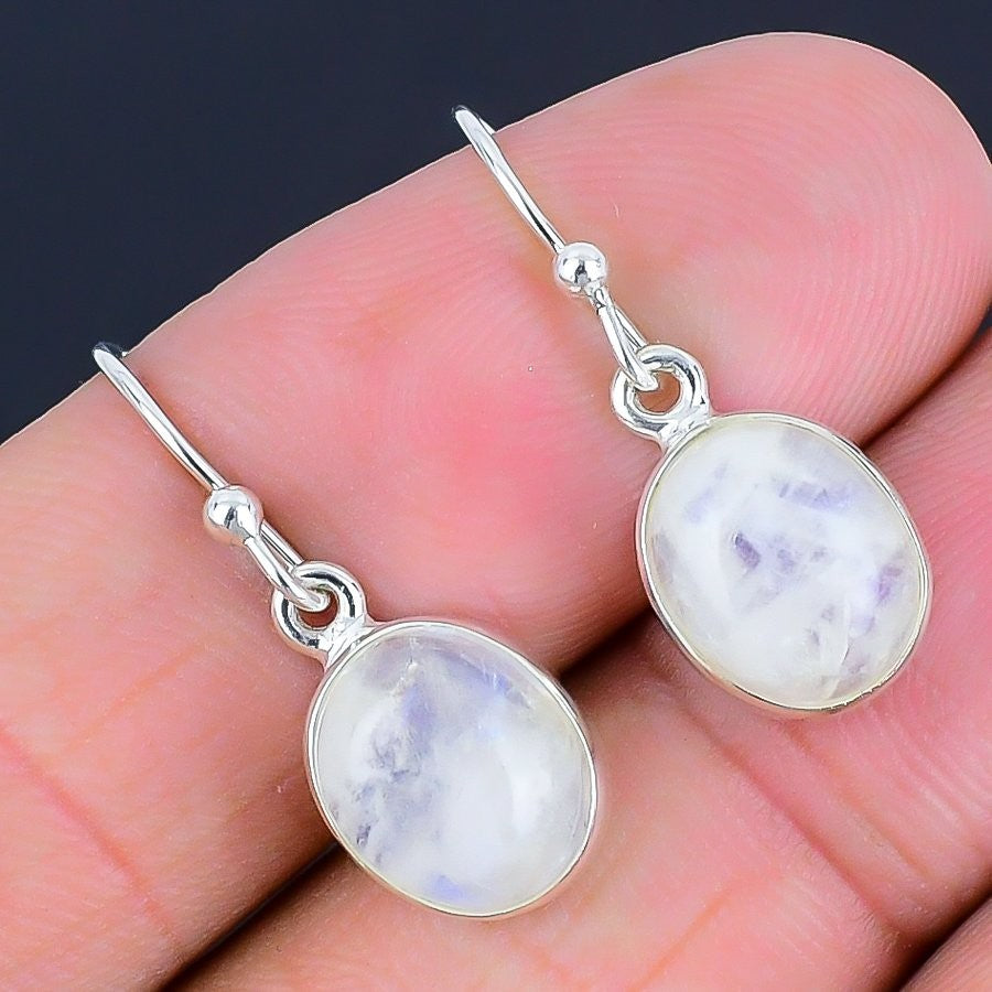 Rainbow Moonstone Stone Solid Silver Daughter Elegant Drop Dangle Hook Earrings