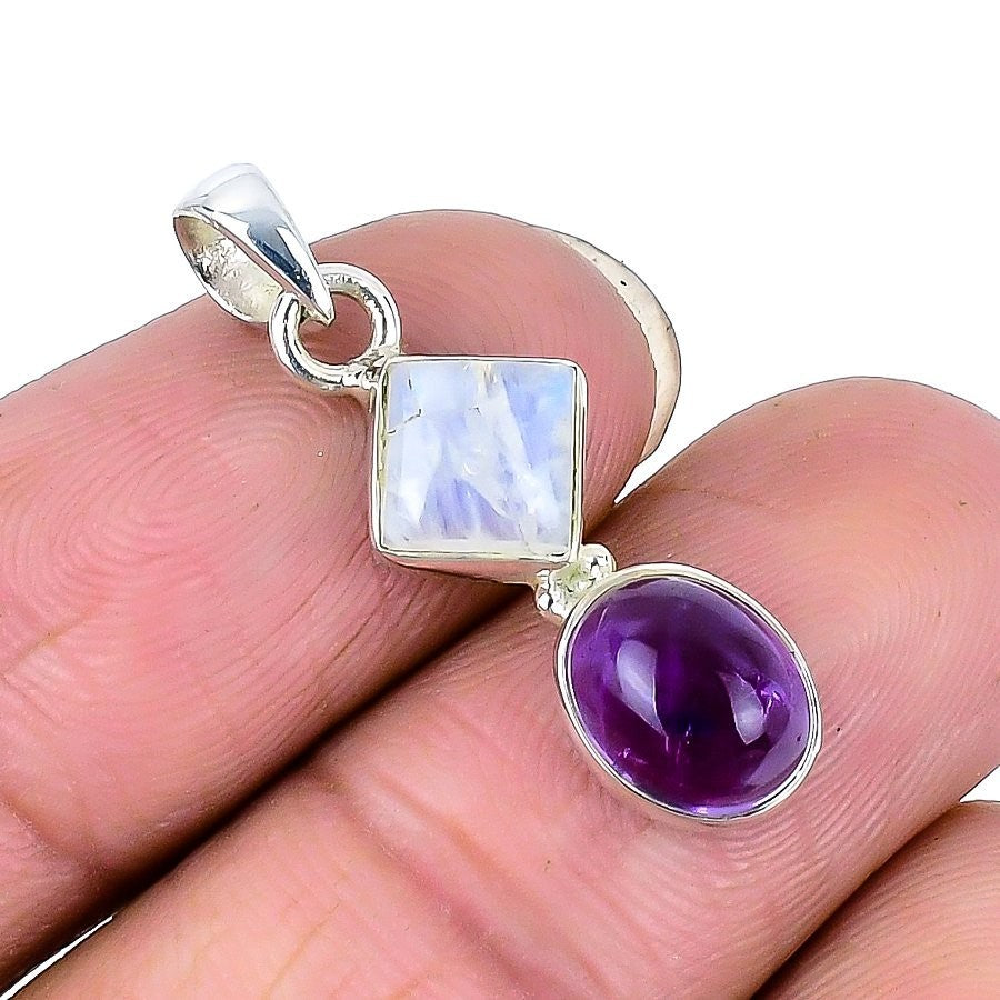 Rainbow Moonstone Stone Solid Silver Sister Engagement Artisan Pendant Jewelry