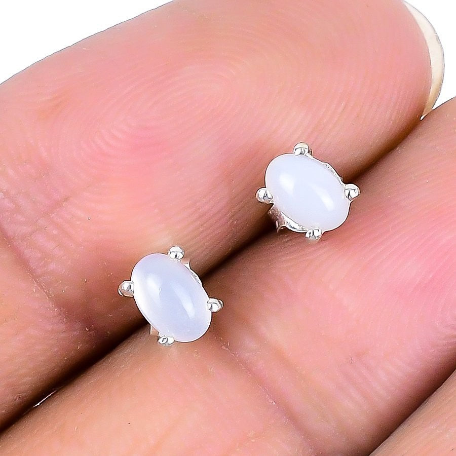 Rainbow Moonstone Stone Solid Silver Sister Stud Daughter Gift Earrings Jewelry
