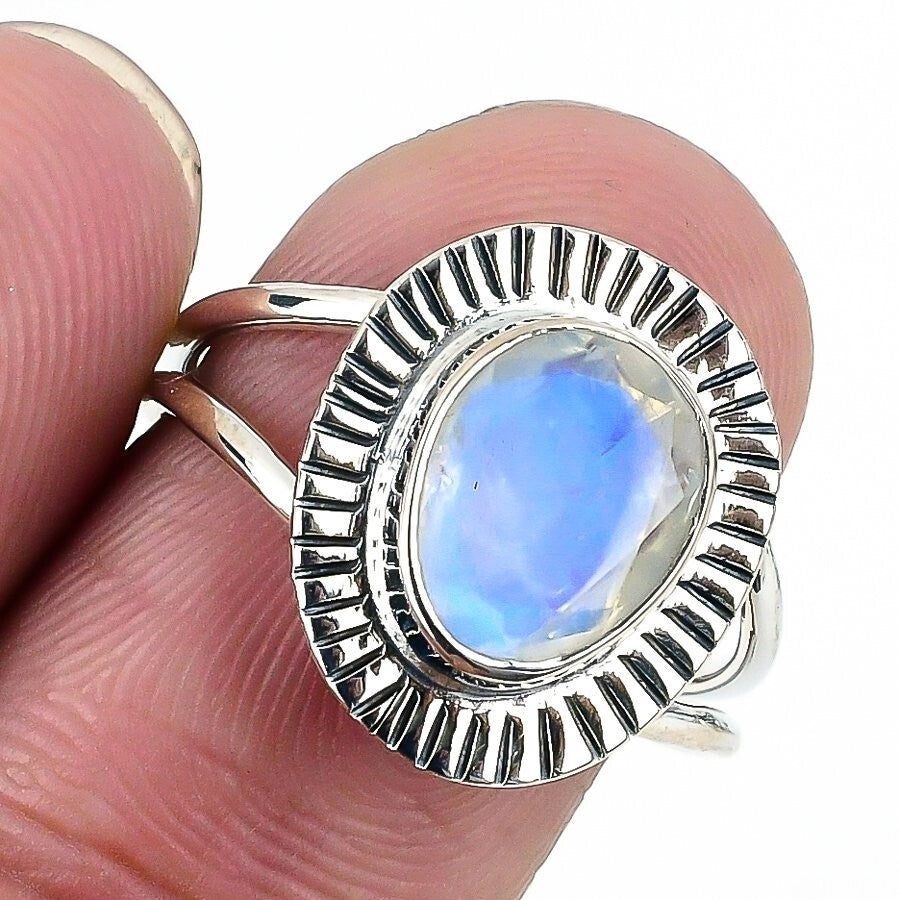 Elegant Rainbow Moonstone Stone Solid Sterling Silver Boho i