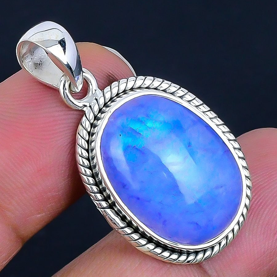 Rainbow Moonstone Stone Solid Sterling Silver Crown Chakra Wife Pendant Jewelry