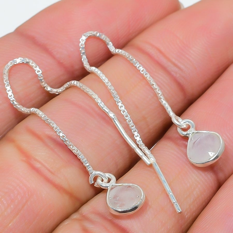 Elegant Rainbow Moonstone Stone Solid Sterling Silver Dangli