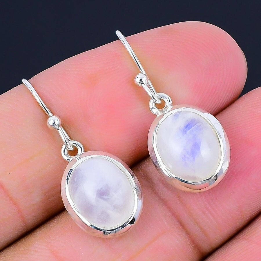 Rainbow Moonstone Stone Solid Sterling Silver Wife Drop Dangle Earrings Jewelry