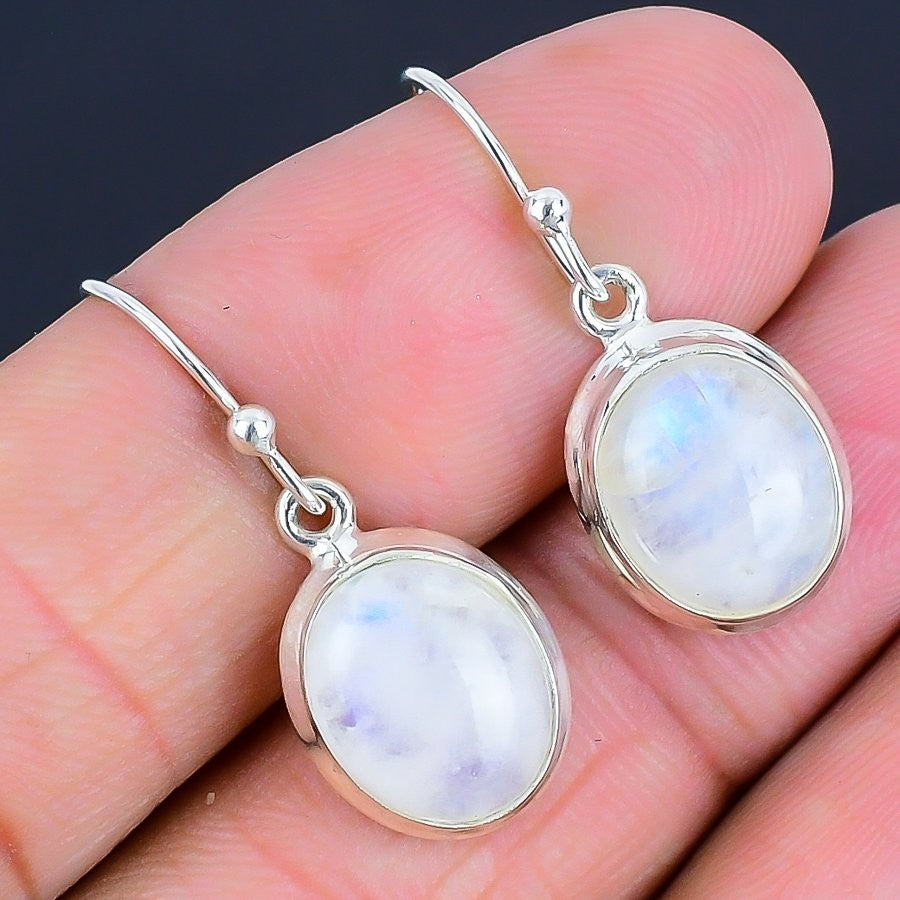 Rainbow Moonstone Stone Sterling Silver Anniversary Engagement Dangling Earrings