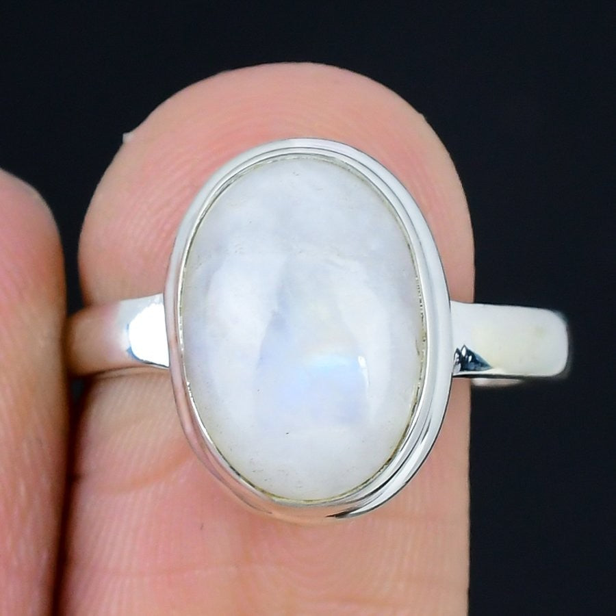 Elegant Rainbow Moonstone Stone Sterling Silver Band Daughte