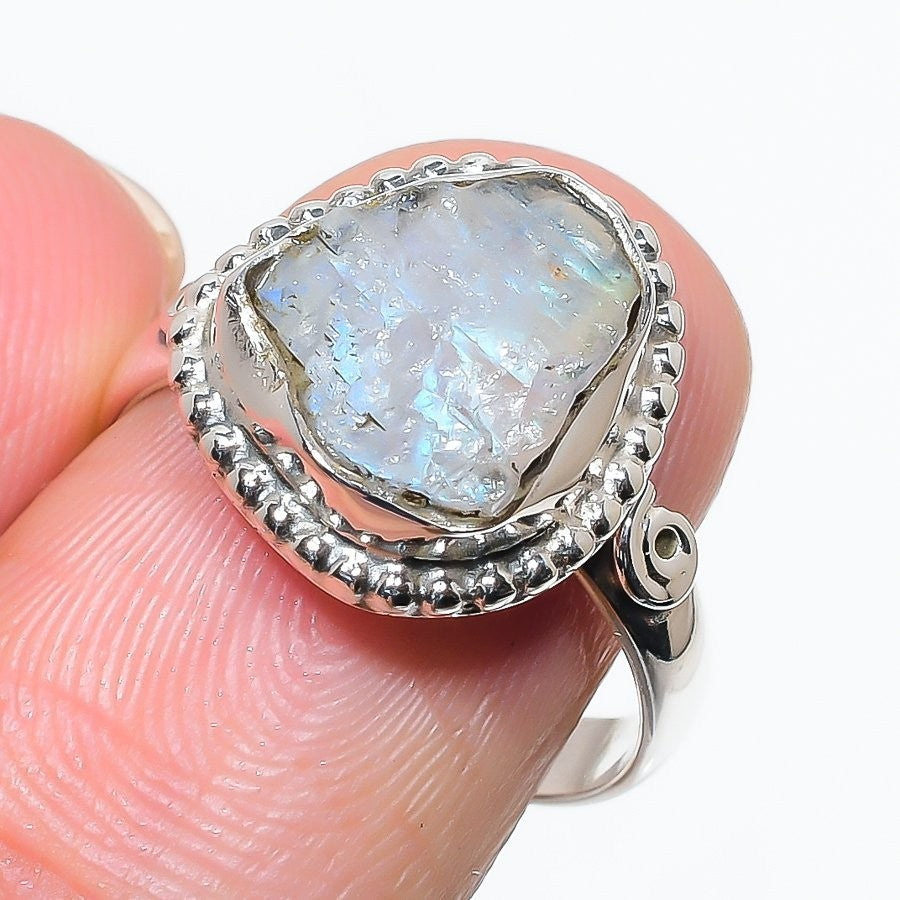 Rainbow Moonstone Stone Sterling Silver New Cluster Mother Ring Jewelry Size 8