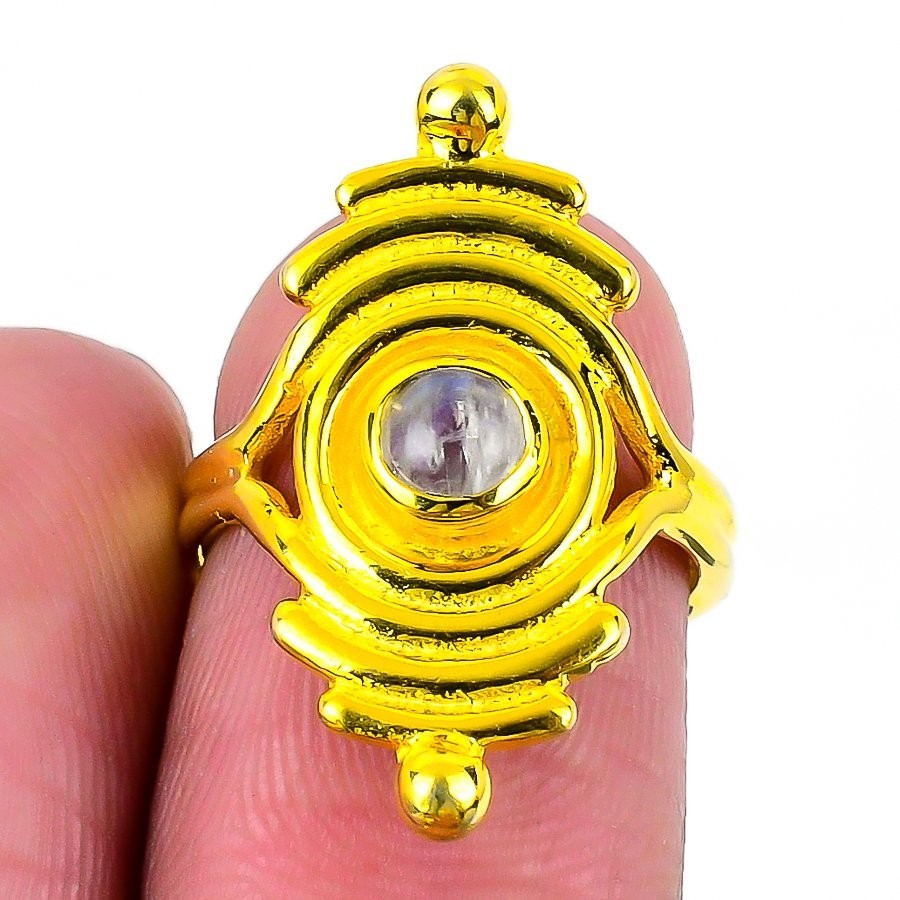 Rainbow Moonstone Stone Wife Statement Ring Size 6 925 Solid Silver Gold Vermeil