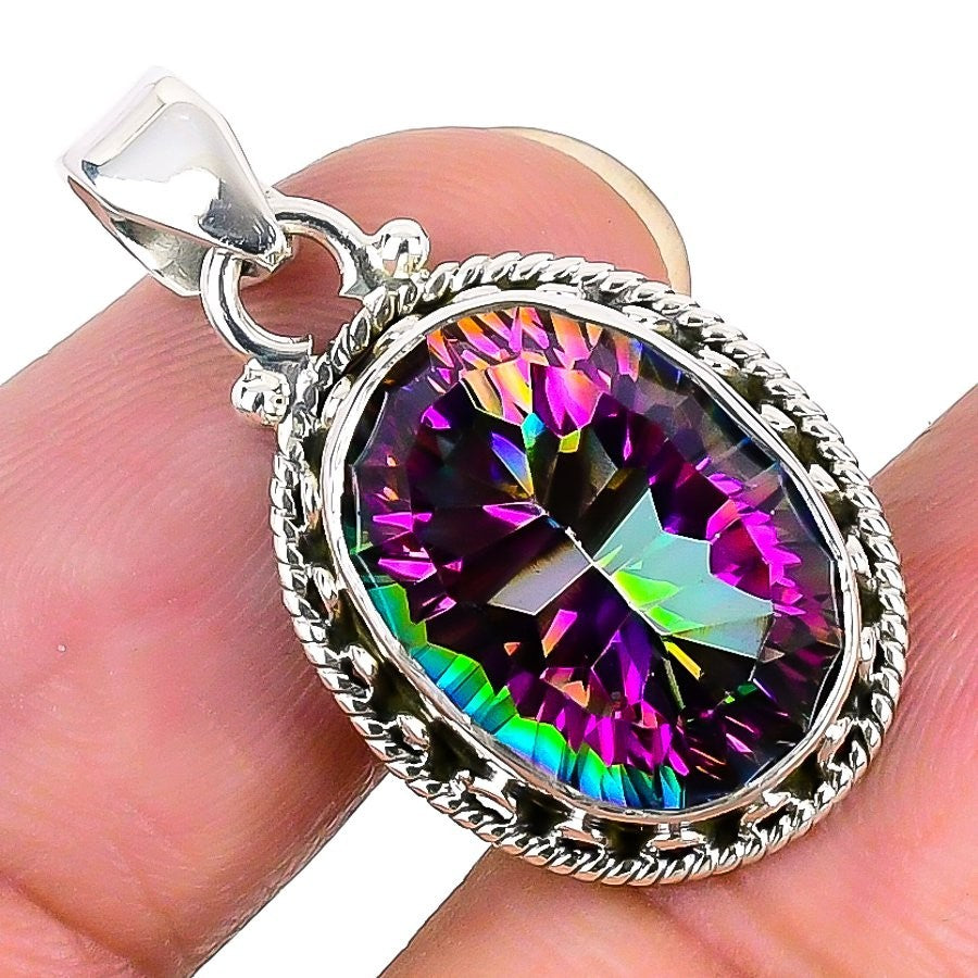 Rainbow Mystic Topaz Gemstone 925 Silver New Handcrafted Mother Pendant Jewelry