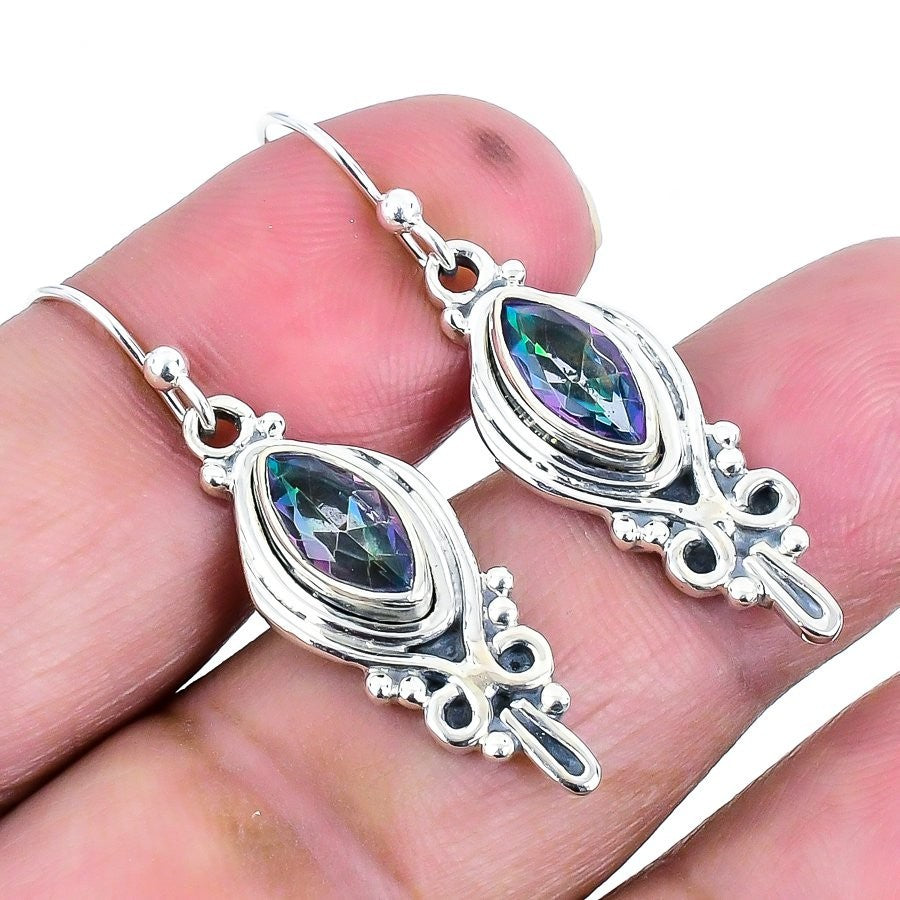 Rainbow Mystic Topaz Gemstone Dangle Boho Earrings Jewelry Solid Sterling Silver