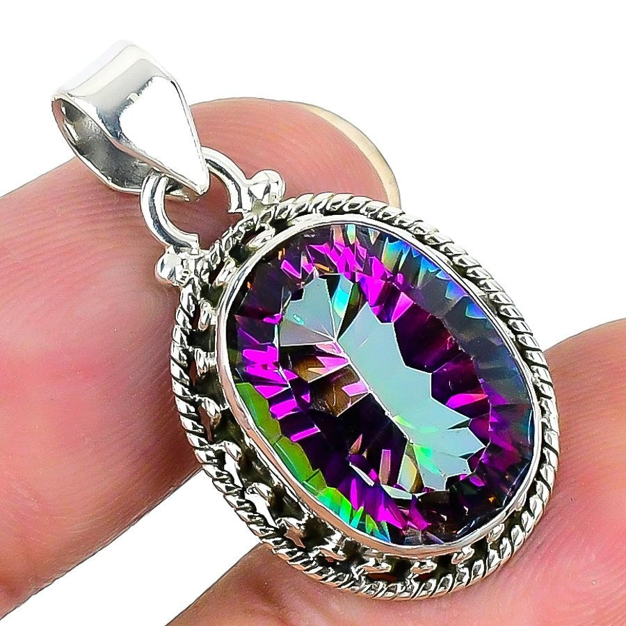 Rainbow Mystic Topaz Gemstone Sisters Day Bezel Pendant Jewelry Sterling Silver