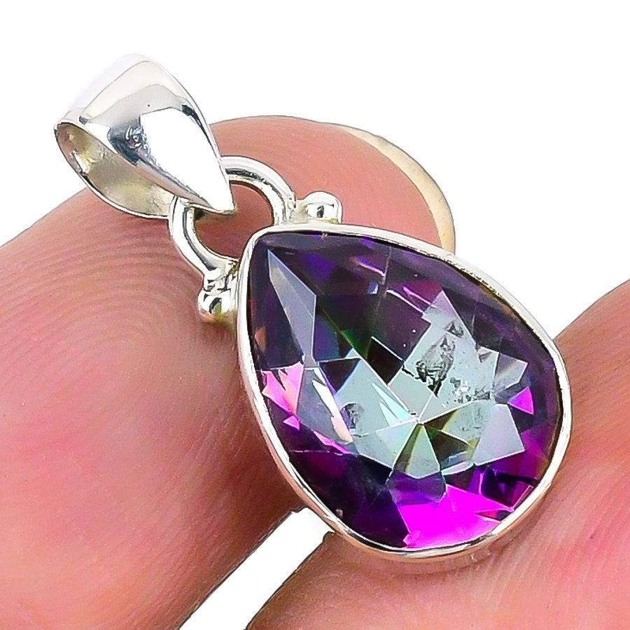 Rainbow Mystic Topaz Gemstone Solid Sterling Silver Wife Trendy Pendant Jewelry
