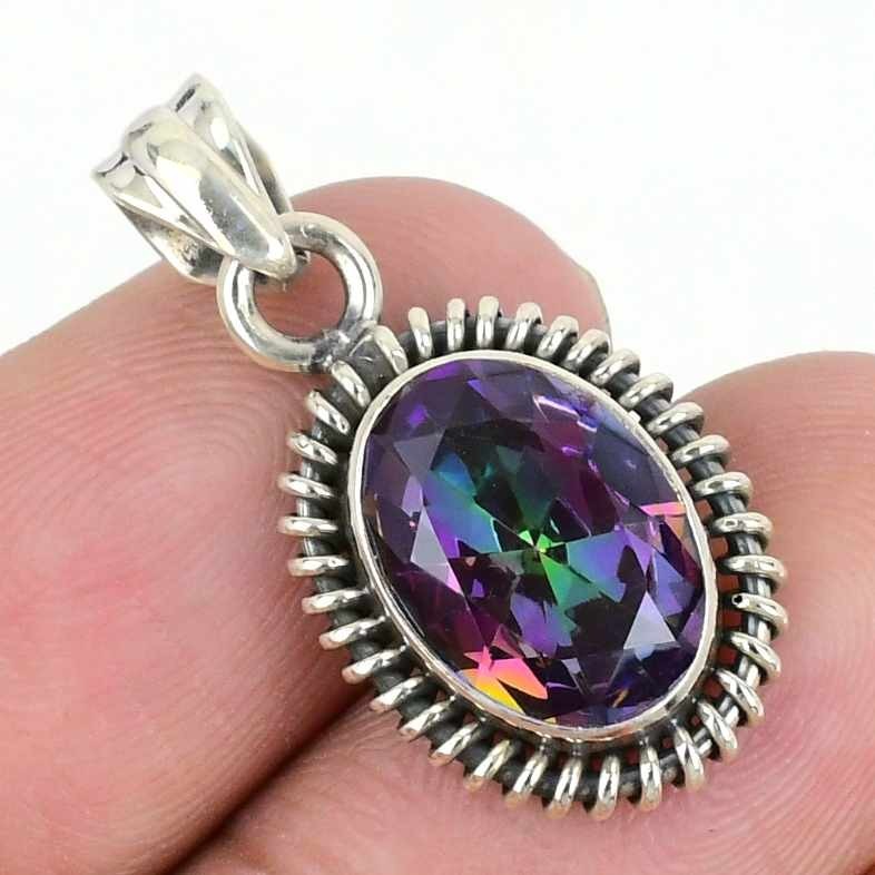 Rainbow Mystic Topaz Gemstone Solid Sterling Silver Wife Wedding Pendant Jewelry
