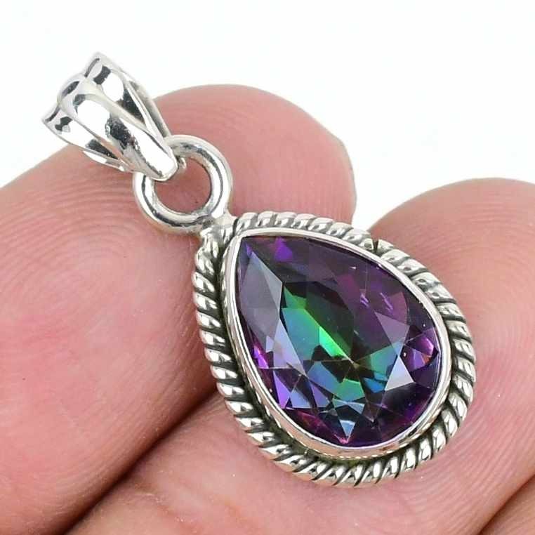 Rainbow Mystic Topaz Gemstone Sterling Silver Handmade Birthday Pendant Jewelry