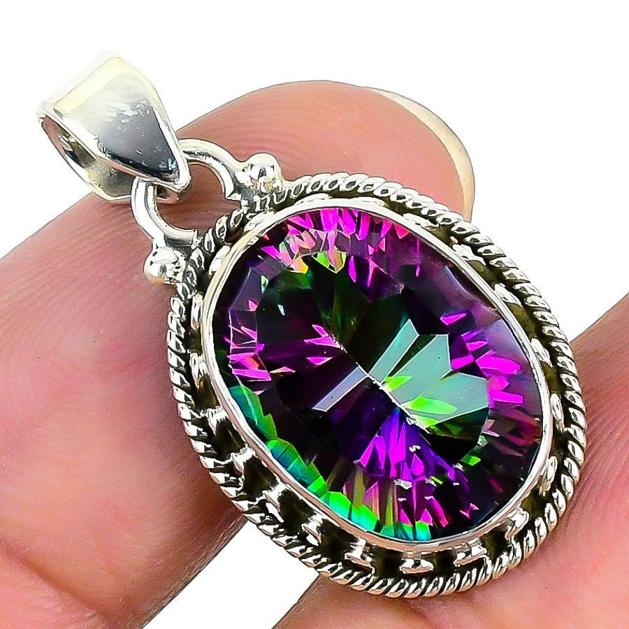 Rainbow Mystic Topaz Gemstone Wife Friend Gift Boho Pendant Jewelry Solid Silver