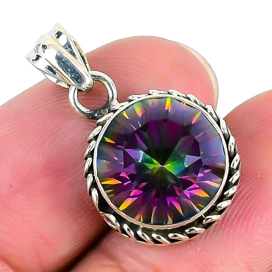 Rainbow Mystic Topaz Stone 925 Silver Sisters Day Wife Wedding Birthday Pendant