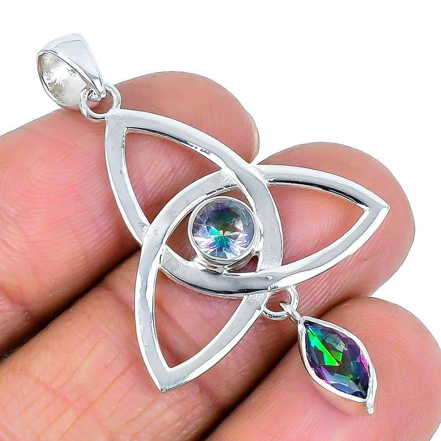 Rainbow Mystic Topaz Stone 925 Silver Wedding Boho Artisan Wife Pendant Jewelry