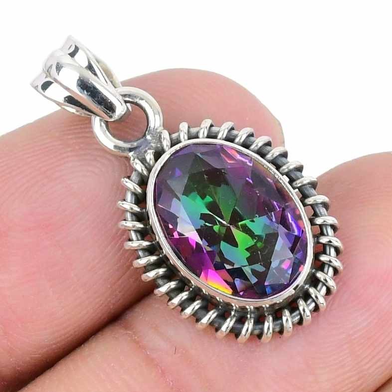 Rainbow Mystic Topaz Stone Solid Silver Wedding Daughter Gift Pendant Jewelry