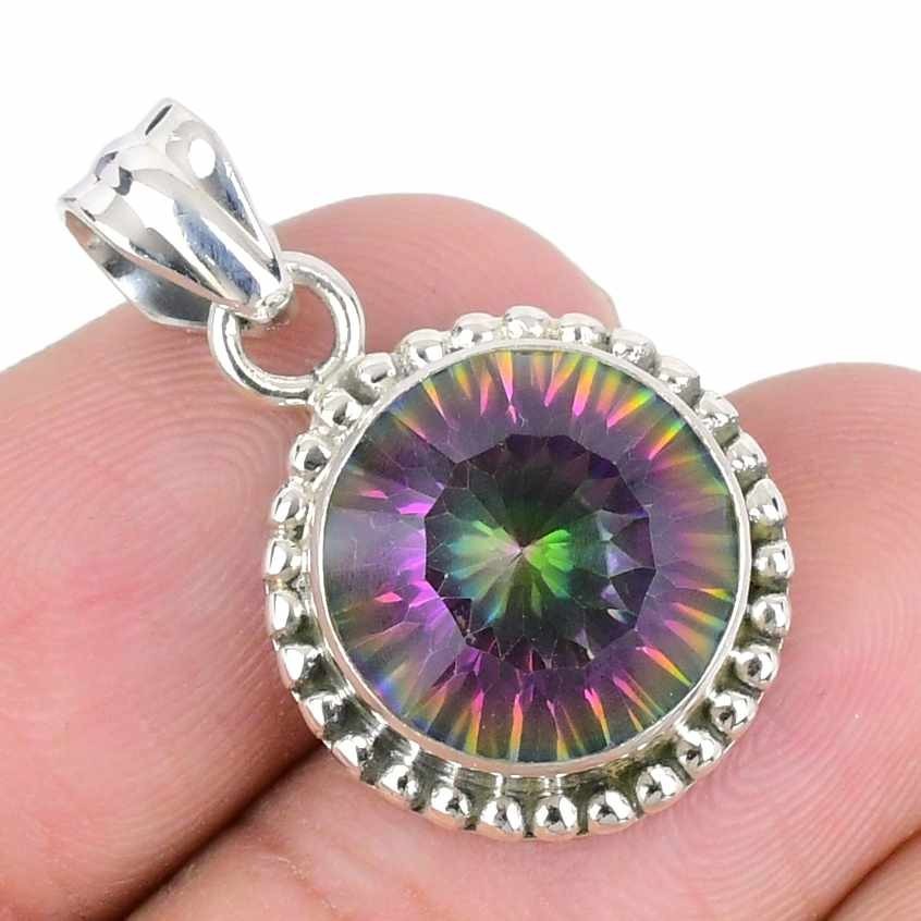 Rainbow Mystic Topaz Stone Sterling Silver Engagement Sister Artisan New Pendant