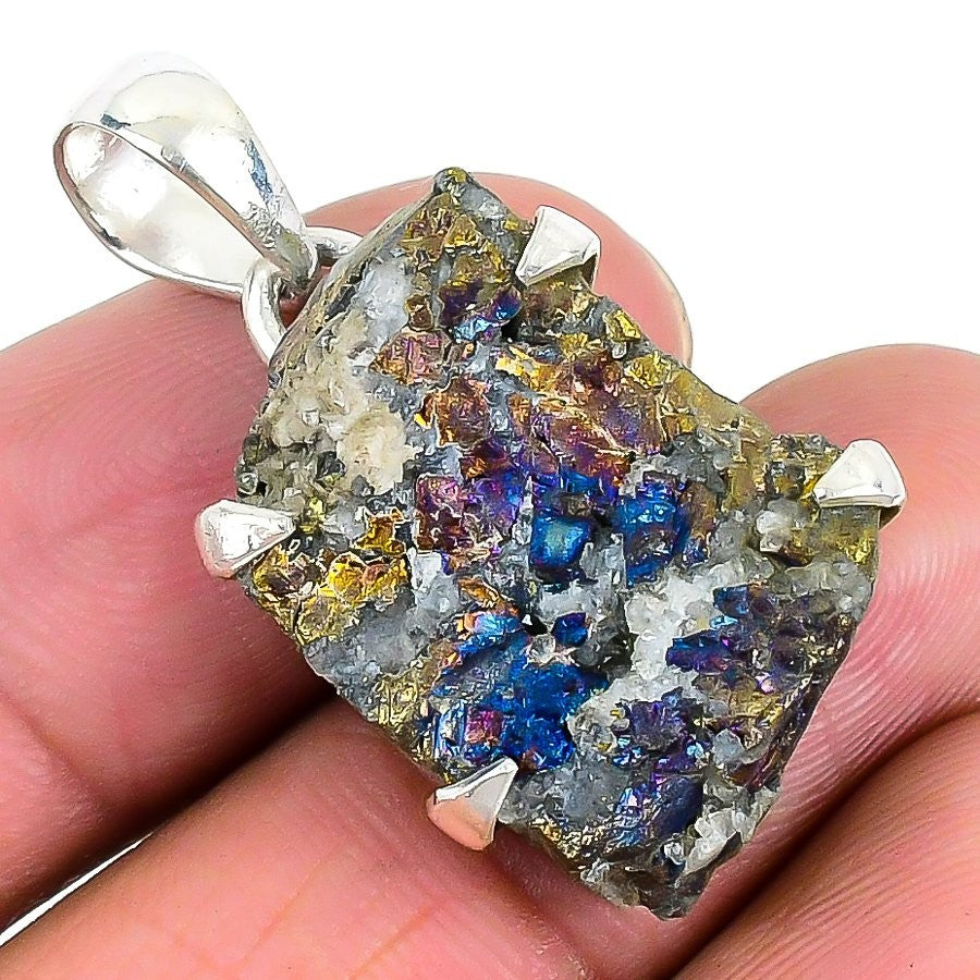 Rainbow Pyrite Druzy Stone 925 Silver Best Daughters Gift Trendy Pendant Jewelry