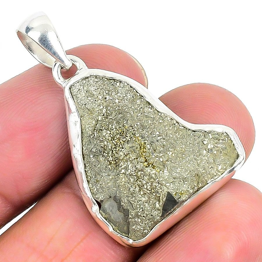 Rainbow Pyrite Druzy Stone Sister Channel Set New Pendant Jewelry Solid Silver
