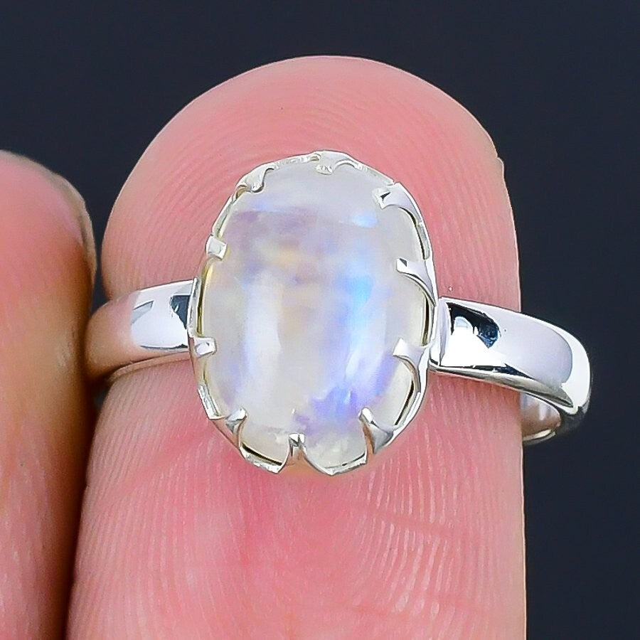 Rainbow Rainbow Moonstone Gemstone 925 Silver Cluster Wife Ring Jewelry Size 6.5
