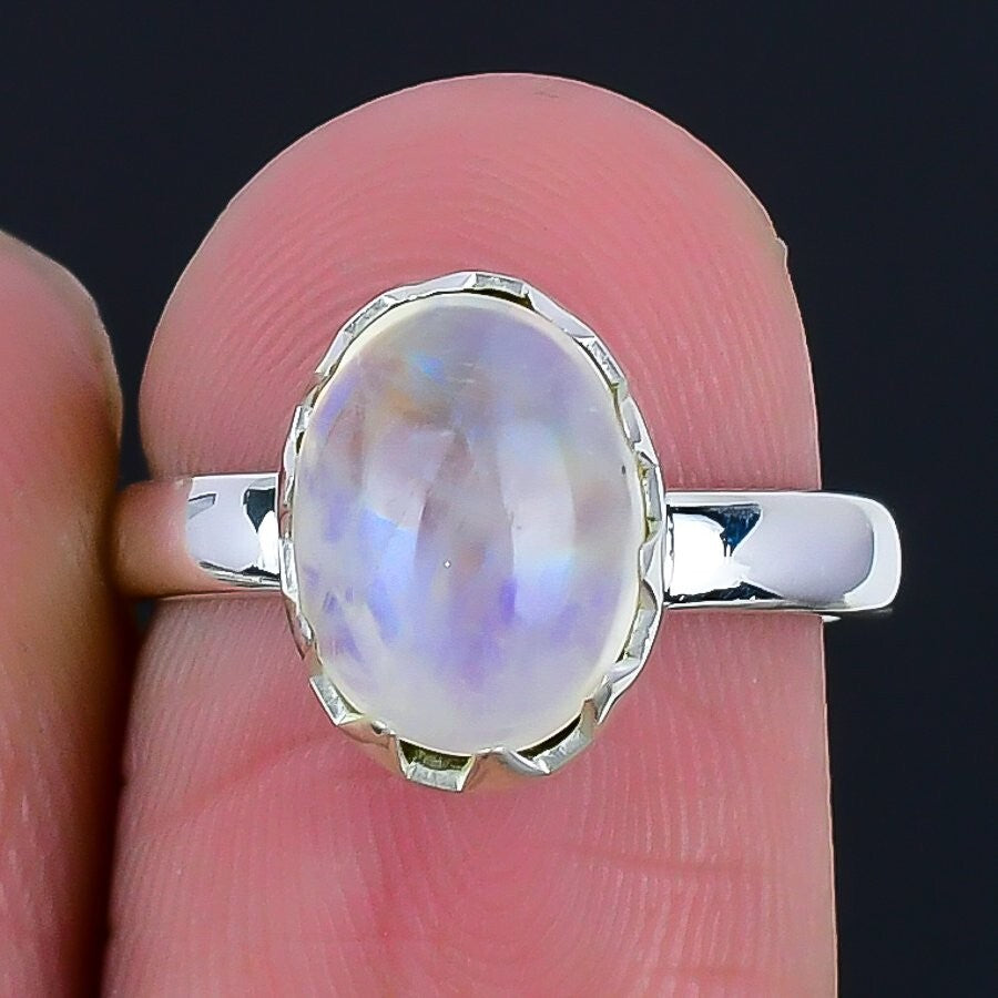 Rainbow Rainbow Moonstone Gemstone 925 Silver Mother Cluster Ring Jewelry Size 6