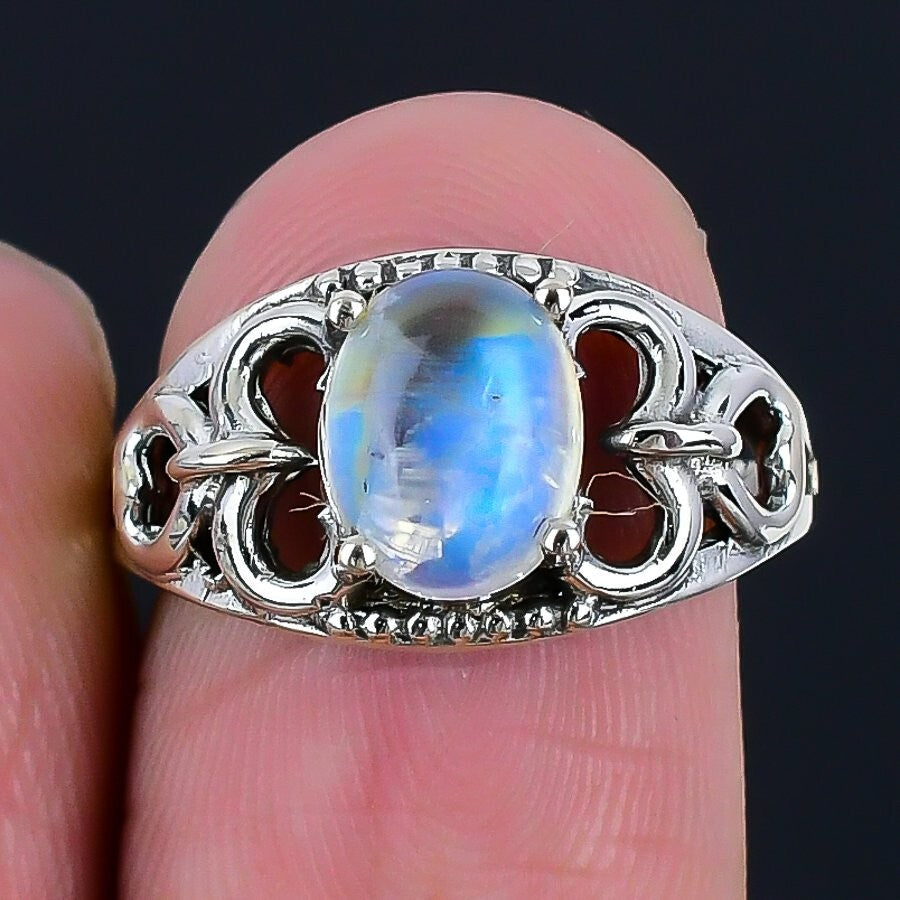 Rainbow Rainbow Moonstone Gemstone Cluster Ring Jewelry Size 6 925 Solid Silver