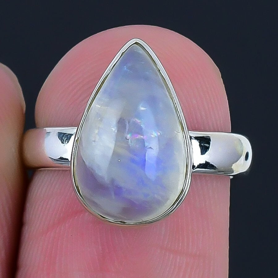 Rainbow Rainbow Moonstone Stone 925 Sterling Silver Cluster Wife New Ring Size 6