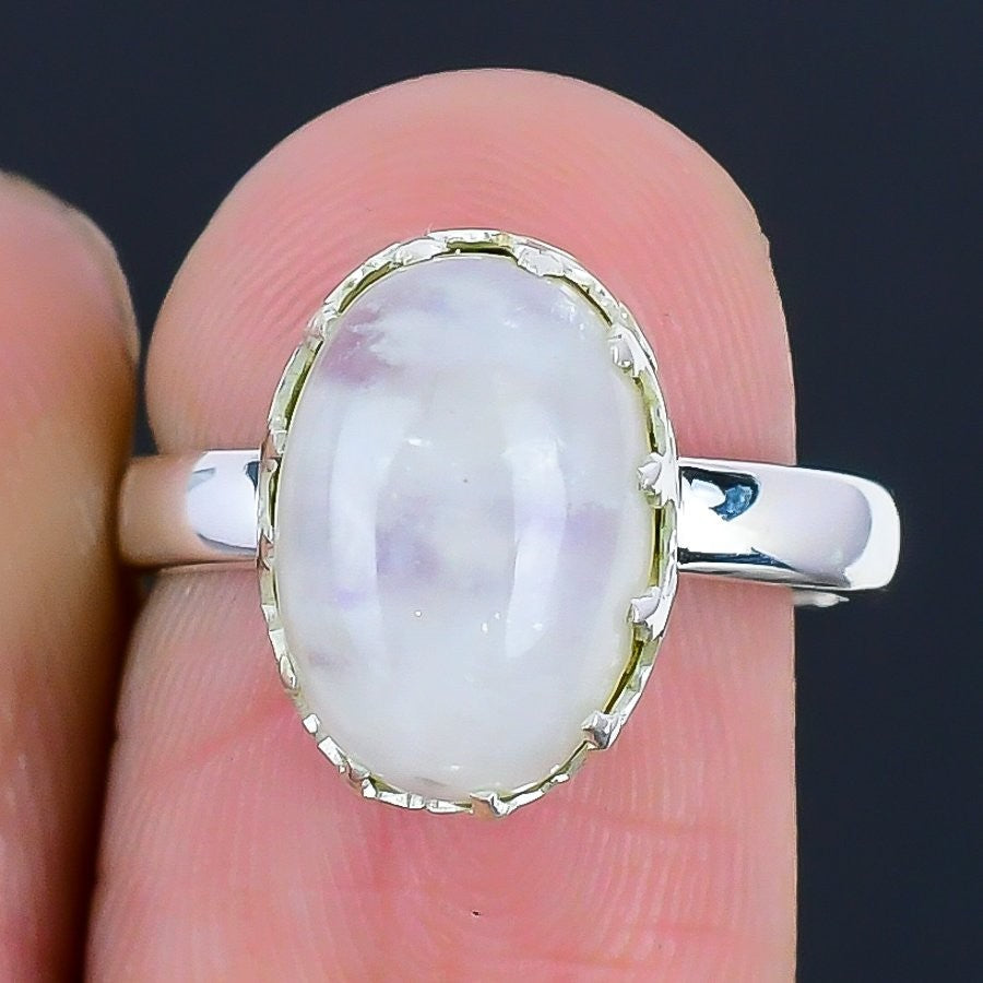 Rainbow Rainbow Moonstone Stone Mother Cluster Ring Jewelry Size 7 Solid Silver