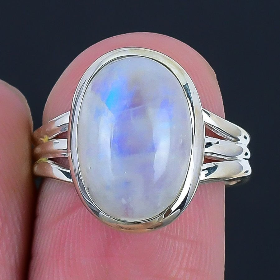 Rainbow Rainbow Moonstone Stone Solid Silver Cluster New Ring Jewelry Size 6.5