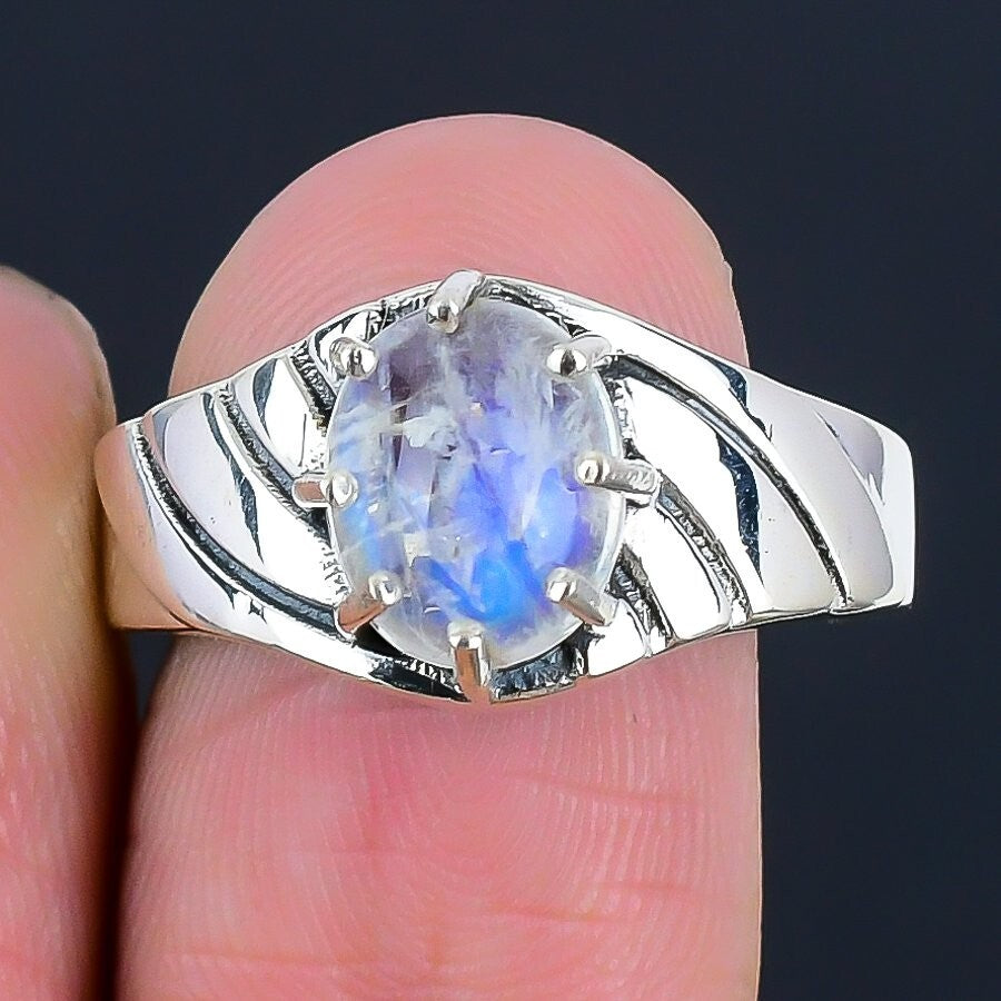 Rainbow Rainbow Moonstone Stone Sterling Silver Boho Cluster Ring Jewelry Size 8