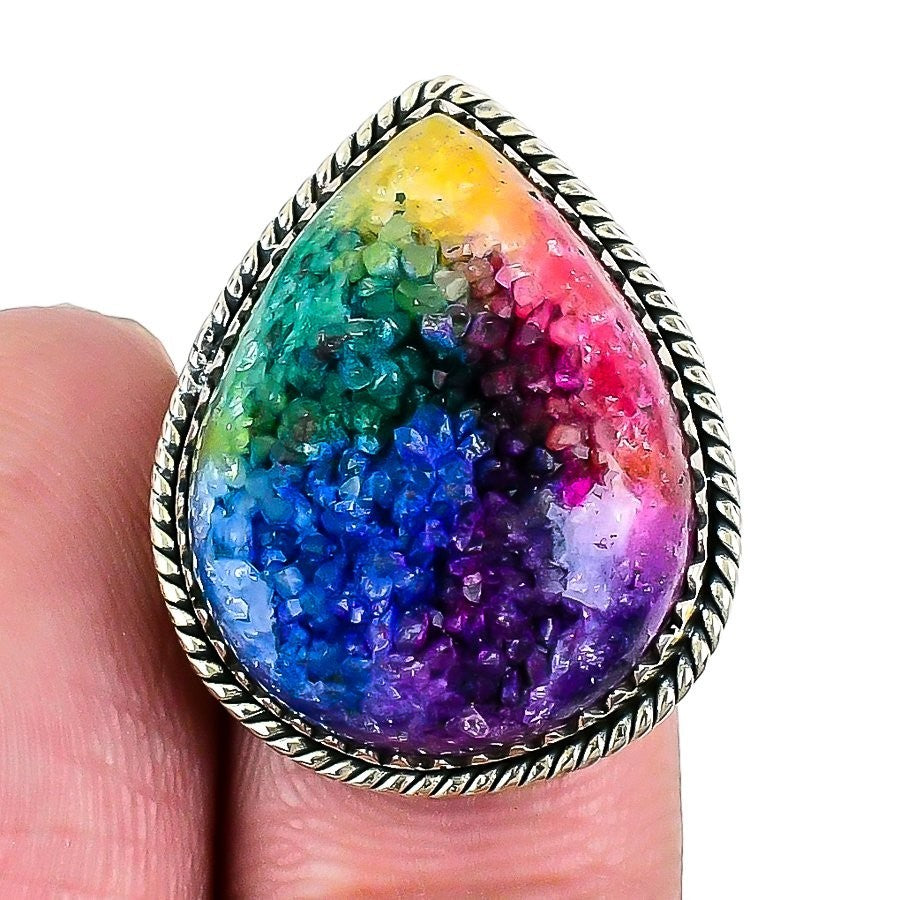 Rainbow Solar Quartz Stone Handmade Statement Wife Ring 925 Sterling Silver US 8