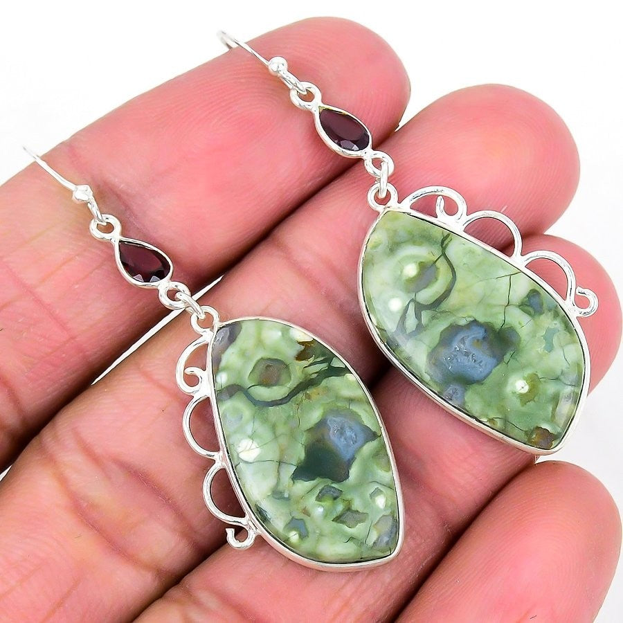 Elegant Rainforest Jasper Gemstone 925 Silver Hook Dangle in